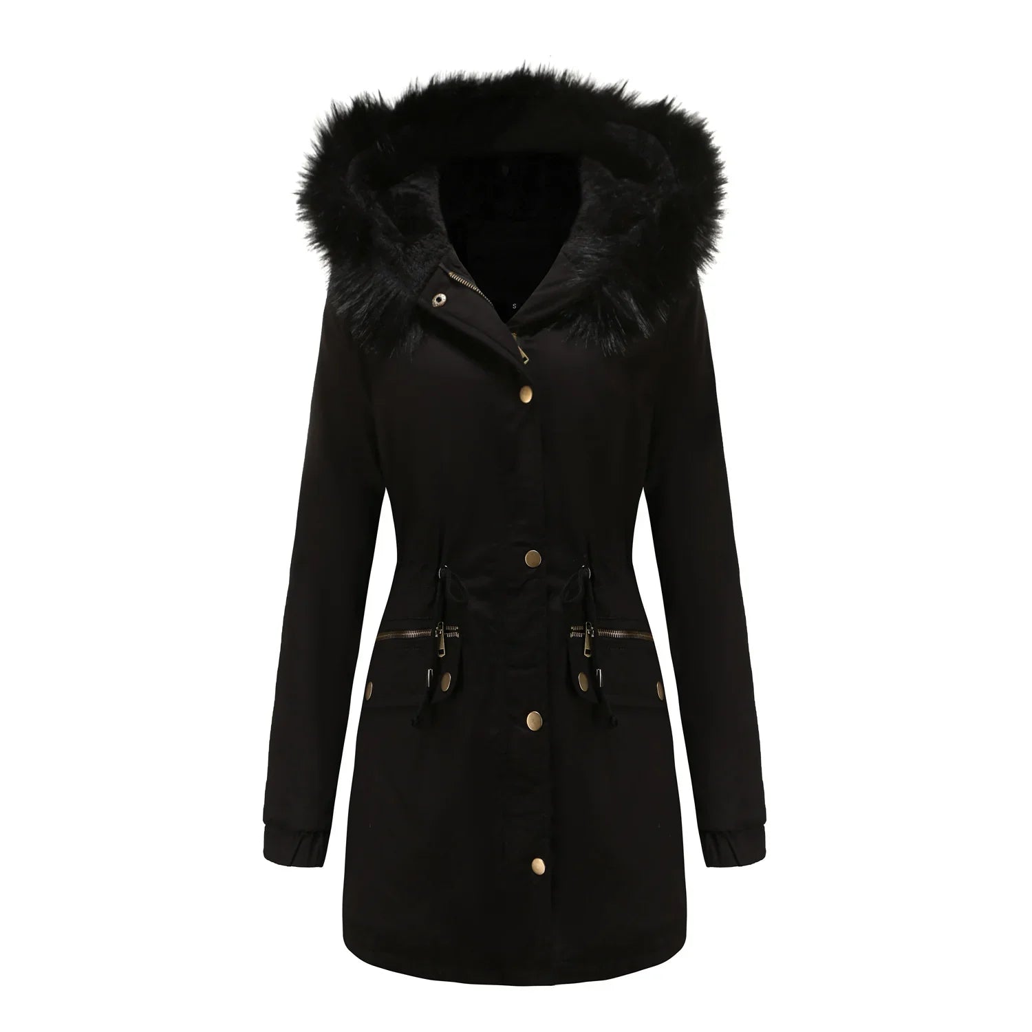 Mid-Length Fur Collar Cotton-Padded Parka Coat