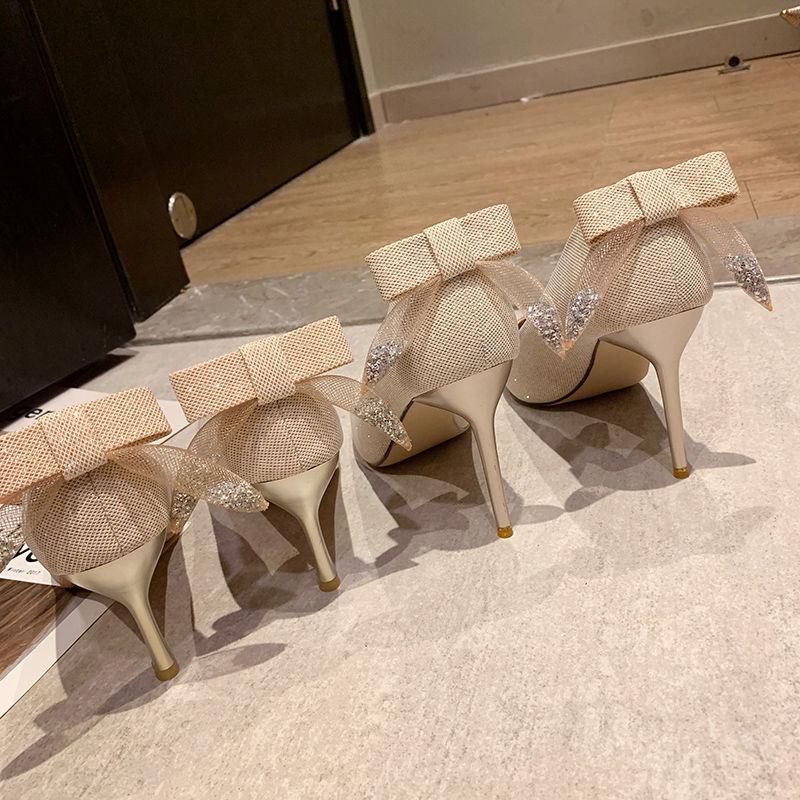 Women's Sequin Stiletto High Heels With Pointed Bow
