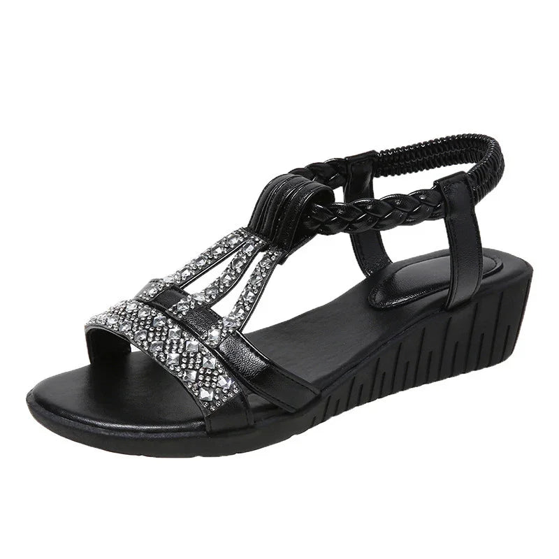 Lässige Keilsandalen mit Strasssteinen, Sommerschuhe in Übergrößen mit offener Zehenpartie im römischen Stil