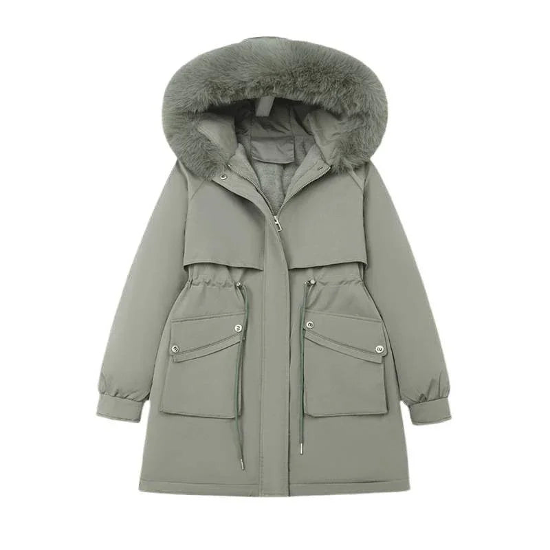 Parka mi-longue à capuche doublée de fourrure pour femme
