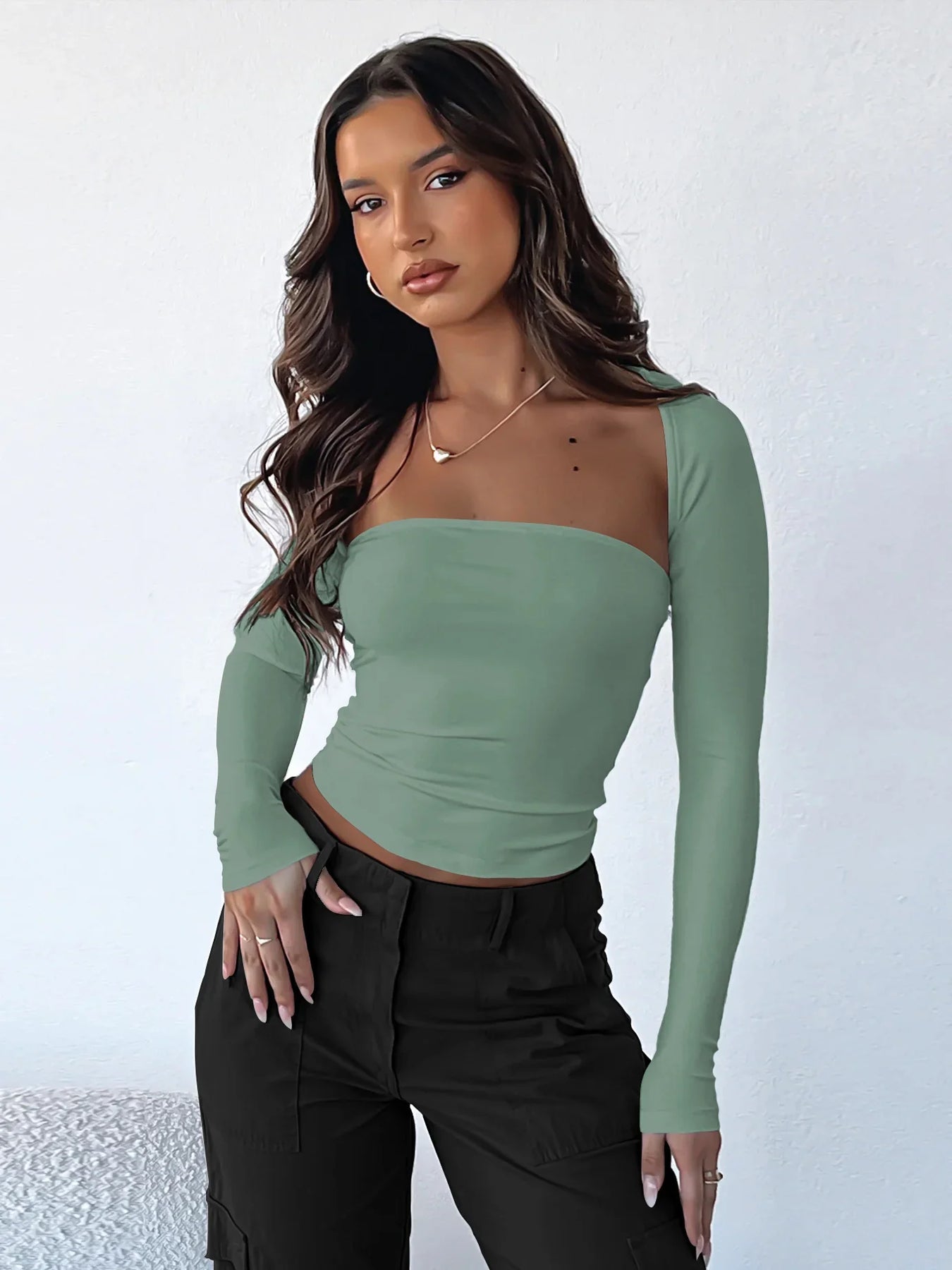 Haut bustier sexy à taille cintrée, T-shirt à manches longues, blouse moulante deux pièces pour femme