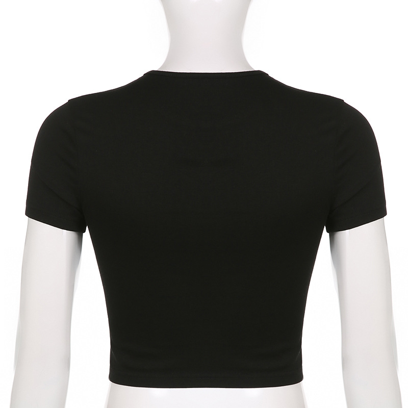 Black cropped t-shirt with silver tribal wing design and subtle dark patterns
