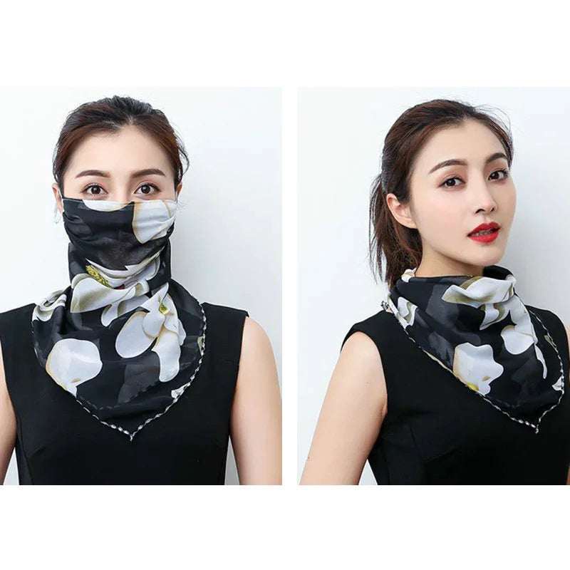 Foulard en soie, protège-cou, masque d'été pour femme, foulard à suspendre aux oreilles, voile fin pour le printemps et l'automne, masque couvrant le visage, bavoir triangulaire