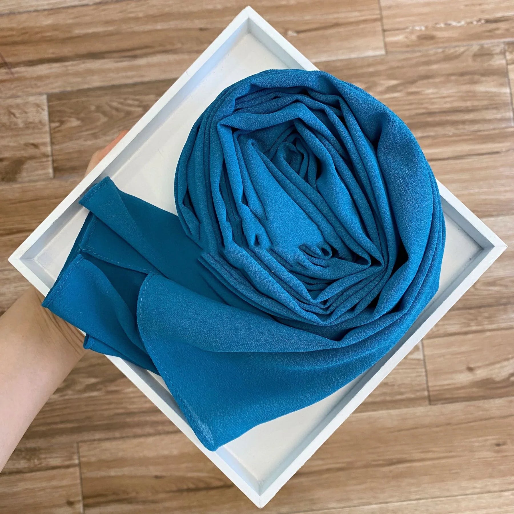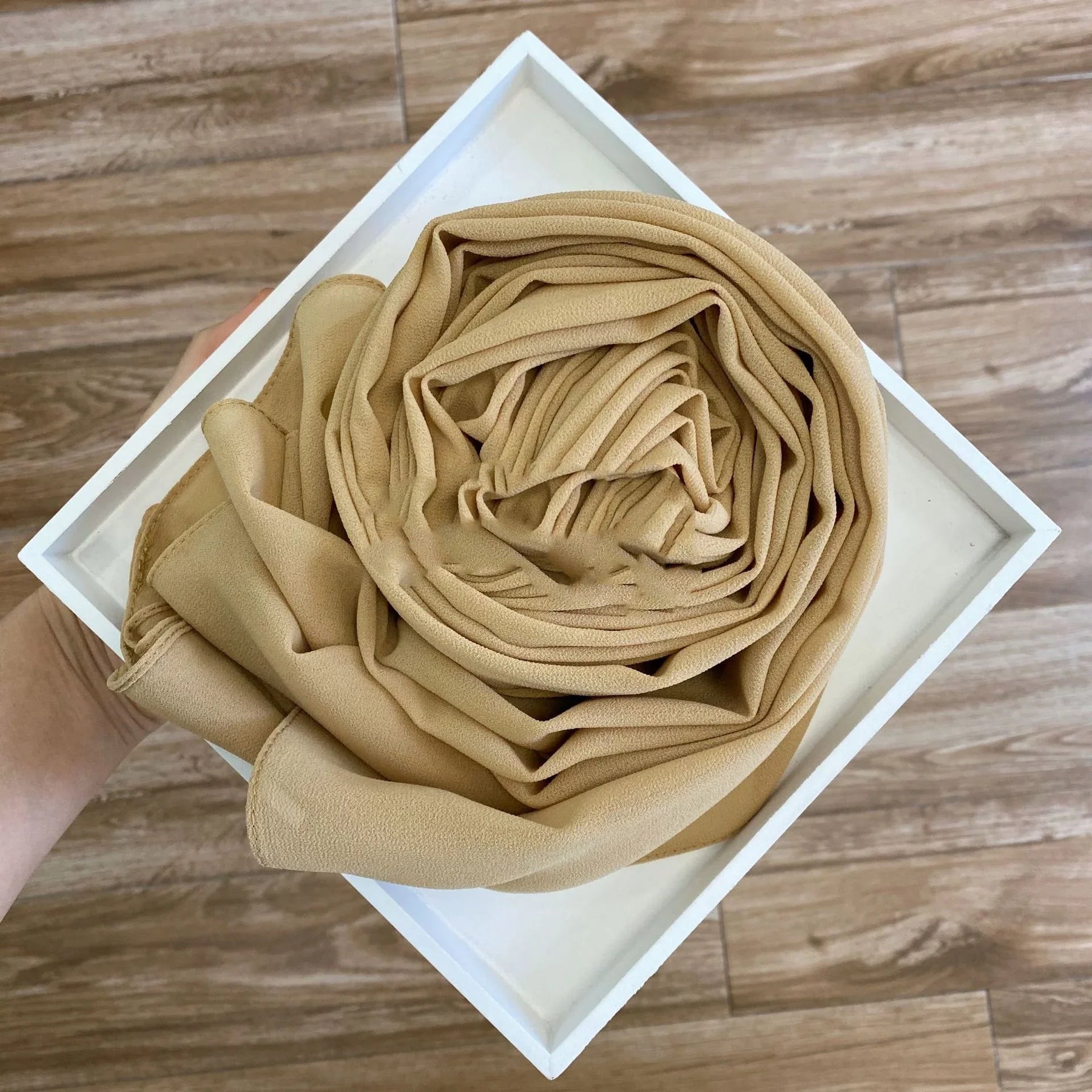 Hijab pour femme, foulard en mousseline de soie unie à perles