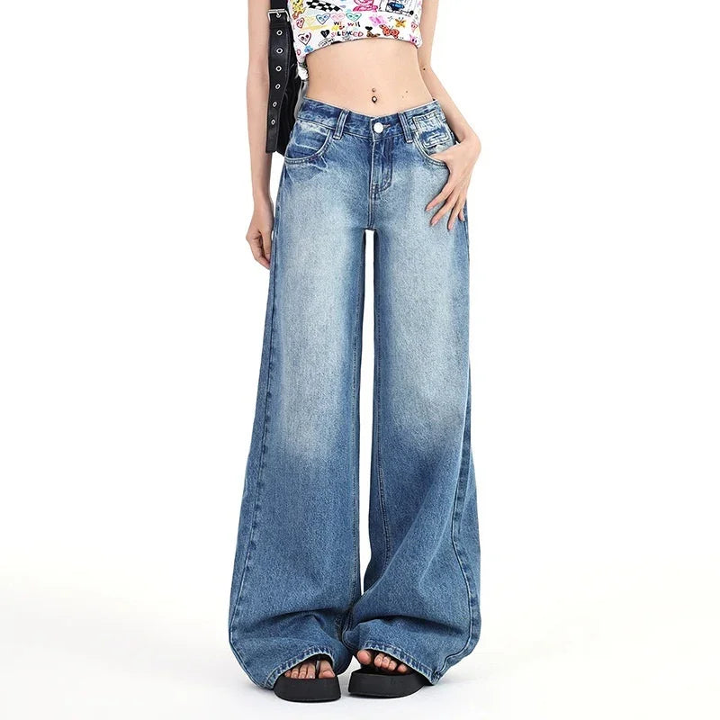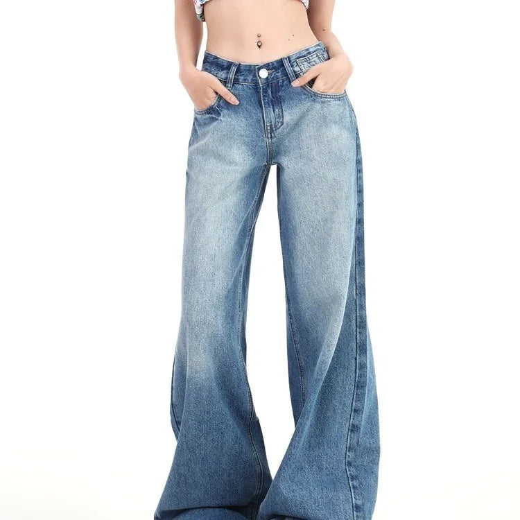 Jean d'été rétro américain pour femme, taille basse et jambes larges