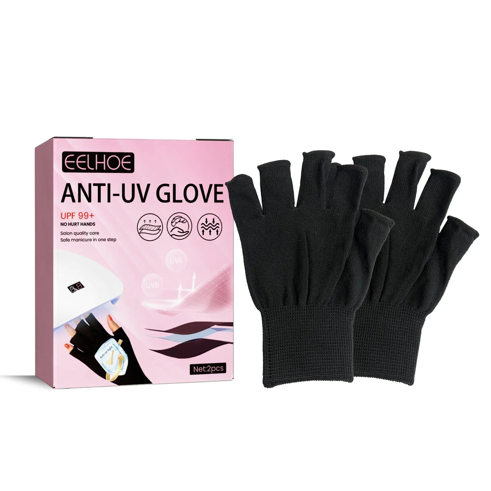 EELHOE black anti-UV gloves with pink packaging, UPF 99+ protection for salon manicure