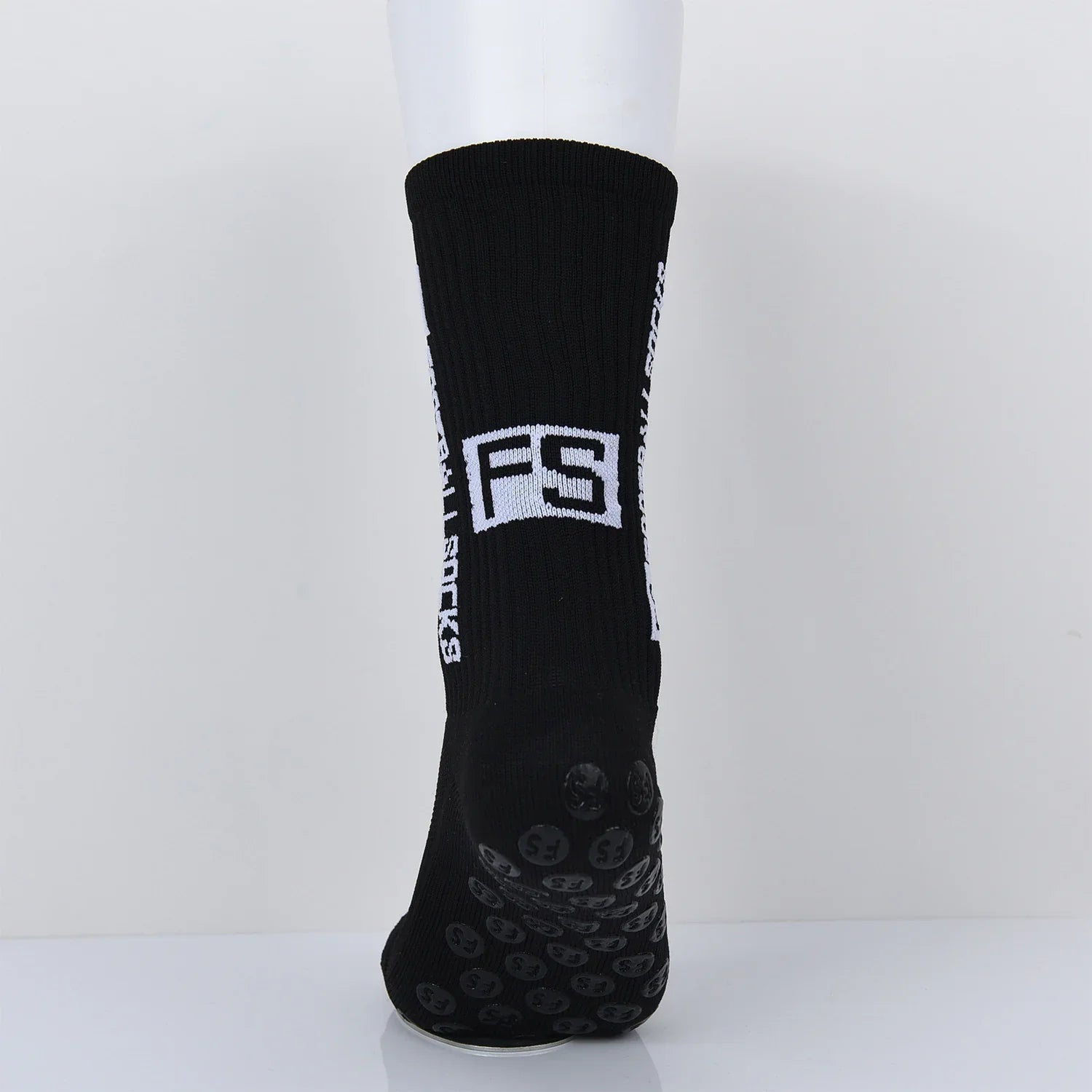 Black grip socks with white FS logo and text on side, displayed on white mannequin foot