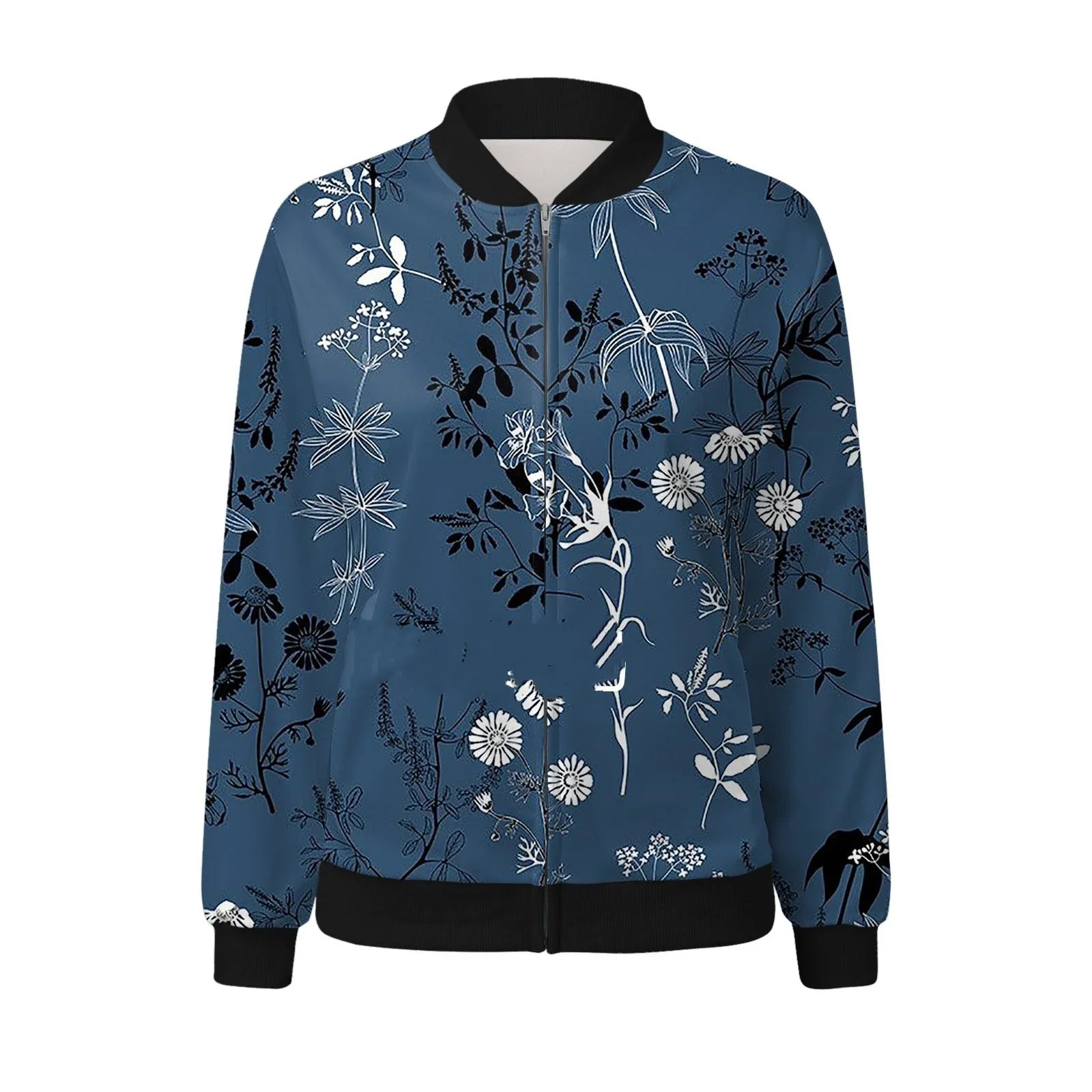 Autumn And Winter New Women's Long Sleeve Zipper Printed Jacket Coat