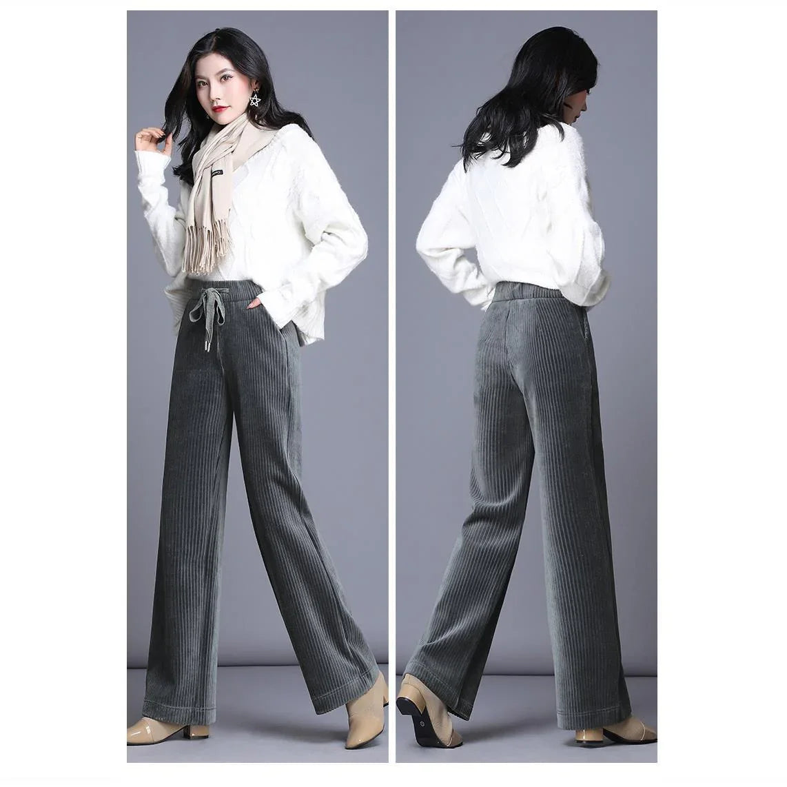 Fashion Straight Solid Pants Casual High Waist Plus Office Lady Elastic Waist Corduroy