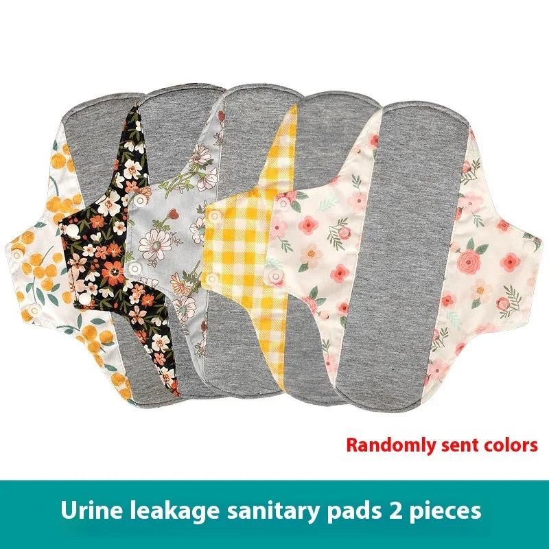 Set of reusable urine leakage sanitary pads with floral and checkered patterns in soft fabric