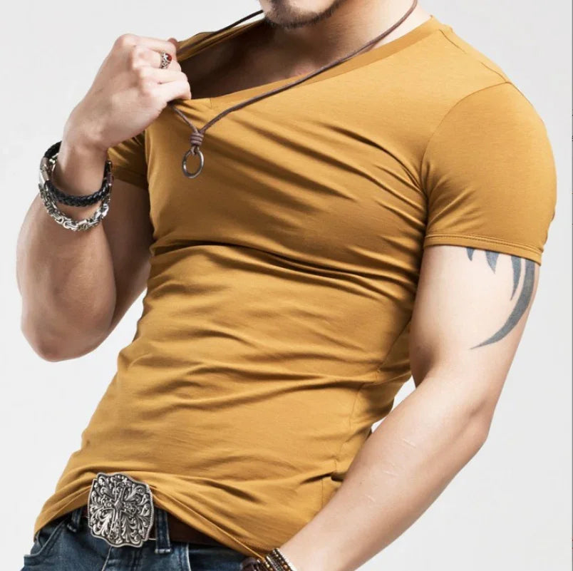 Supply Wholesale Men's Sports Tight-Fitting Men's Short-Sleeved V-Neck T-Shirt